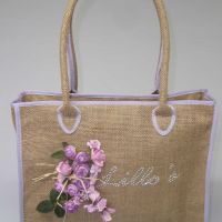 BORSA IN TESSUTO JUTA COL. SACCO MOD GLICINE CON APPLICAZIONI FLOREALI ROSA/LILLA