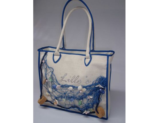BORSA IN TESSUTO JUTA COL.BIANCO MOD.MEDITERRANE' CON APPLICAZIONI MARINE