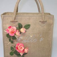 BORSA IN TESSUTO JUTA COL. SABBIA MOD. WITHE-SAND CON APPLICAZIONI FLOREALI ROSA-LILLA